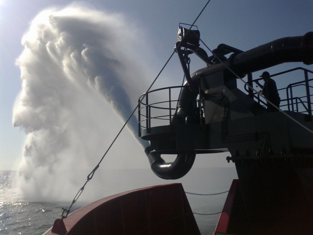 Advanced dredging equipment, such as bow discharge installations, turning glands, and quick-release ball joints.